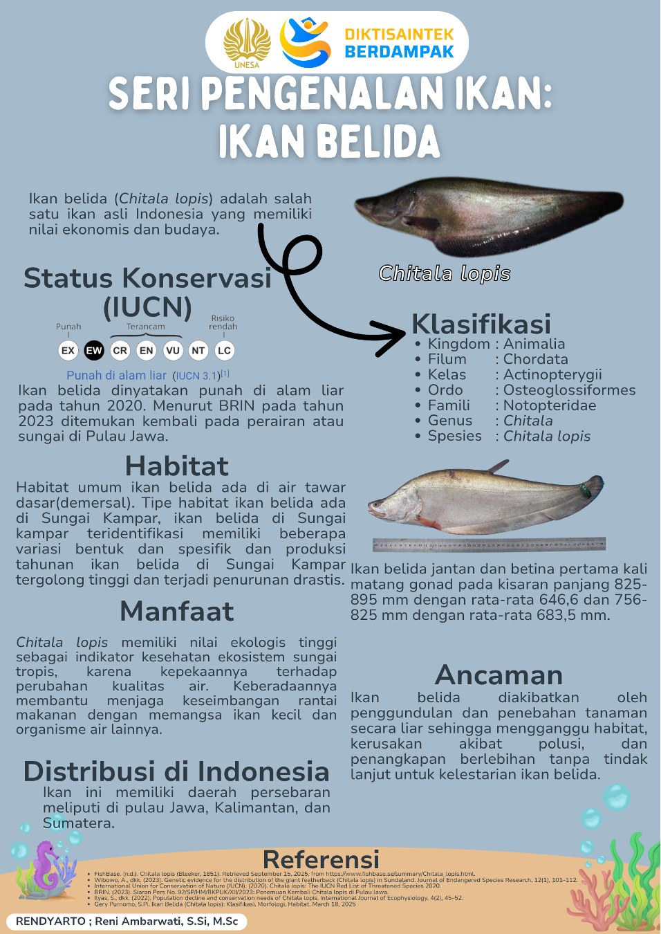 Ikan belida (Chitala lopis), salah satu ikan asli Indonesia yang mem