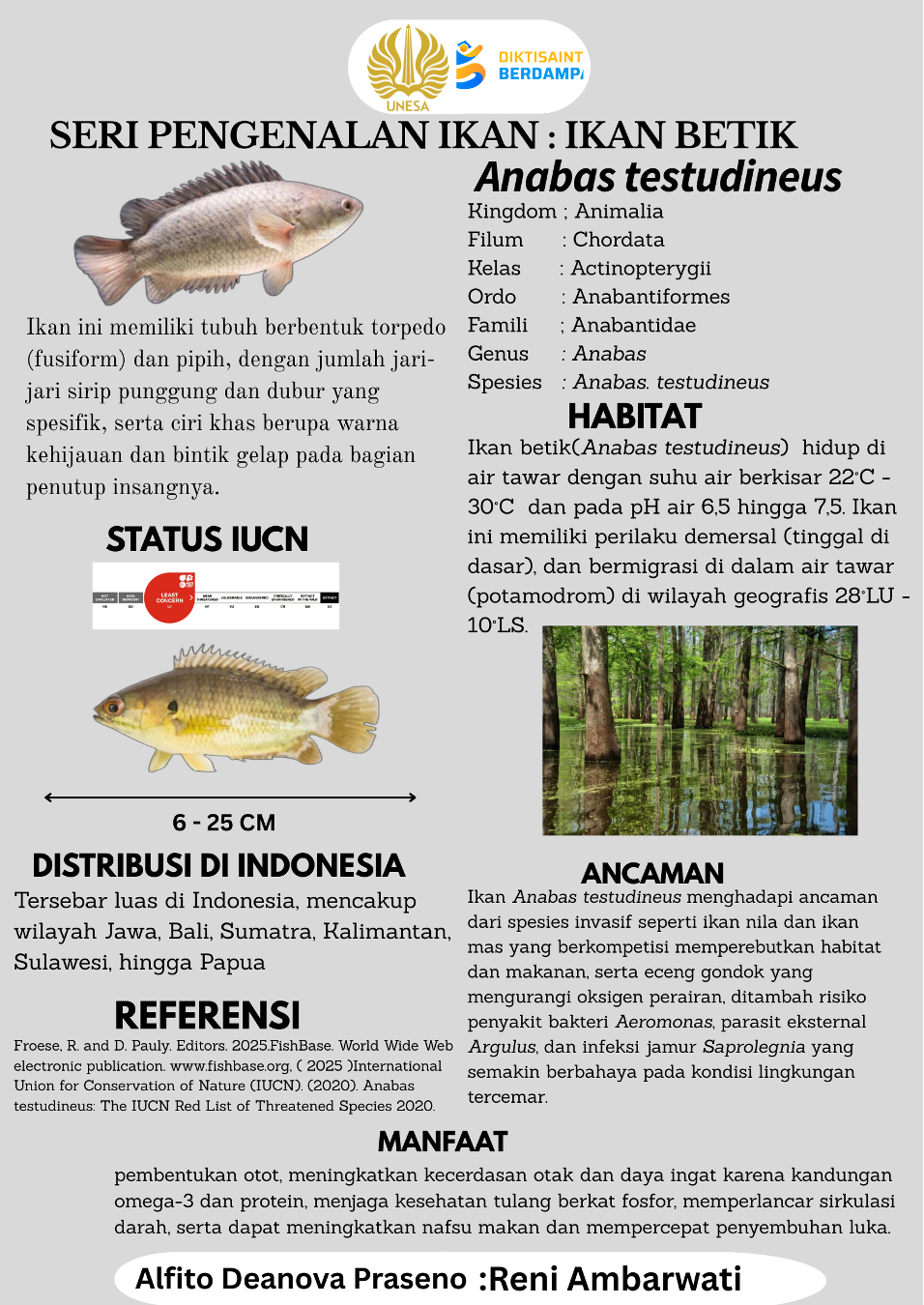 Ikan betik (Anabas testudineus), salah satu spesies ikan air tawar yang tersebar luas di Indonesia,
