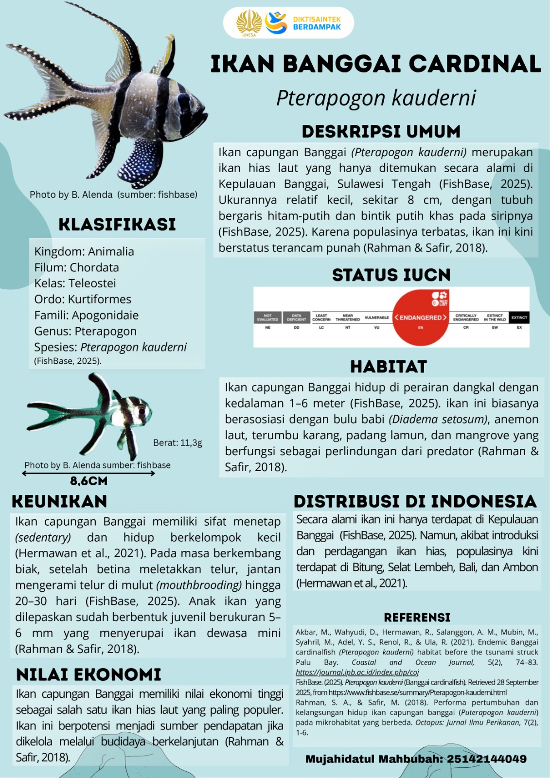 Ikan capungan Banggai (Pterapogon kauderni) merupakan salah satu ikan hias laut endemik