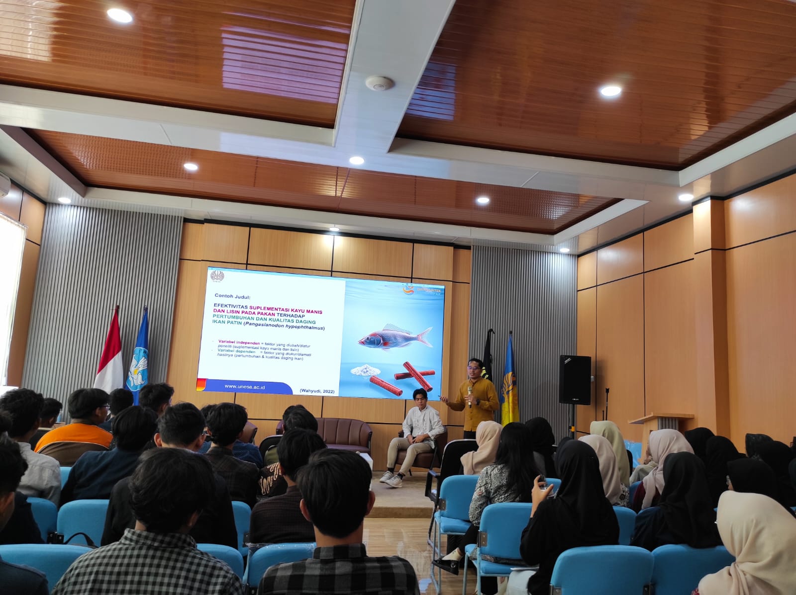 Kegiatan ini dibuka oleh Koordinator Program Studi S1 Akuakultur FKP Unesa, Reni Ambarwati, S.Si., M.Sc. Selanjutnya, Putra Ali Syahbana Matondang, S.Pi., M.Sc. menyampaikan materi bagaimana mendesain suatu penelitian sederhana. Kegiatan ini diharapkan dapat menjadi bekal bagi mahasiswa baru Akuakultur untuk aktif melakukan kegiatan penelitian mahasiswa. (ra)