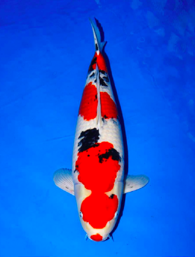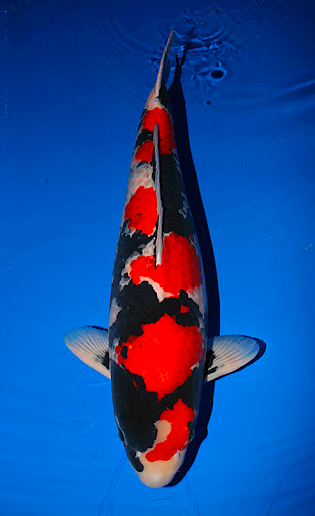Sanke, atau lengkapnya Taisho Sanke, adalah koi yang mempesona dengan kombinasi putih bersih, merah cerah (hi), dan sentuhan hitam elegan (sumi). Berbeda dari Showa, pada Sanke, warna hitam hanya muncul sebagai pola kecil di atas tubuh putih— memberi kesan anggun, bersih, dan berkelas. Sanke adalah simbol keseimbangan dan ketenangan.